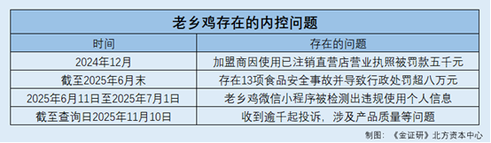 正在招股书中,老乡鸡暗示,其已实施一套全面的系统来监视加盟商的日常运营,确保严酷恪守质量节制、食物平安及运营尺度。此方面,截至2025年6月末存正在多项食物平安变乱并导致行政惩罚,缘由包罗利用跨越保质期的食材等。此外,老乡鸡消费和办事平收到逾千起赞扬、老乡鸡微信小法式曾被检测出违规利用小我消息等景象,或也值得关心。